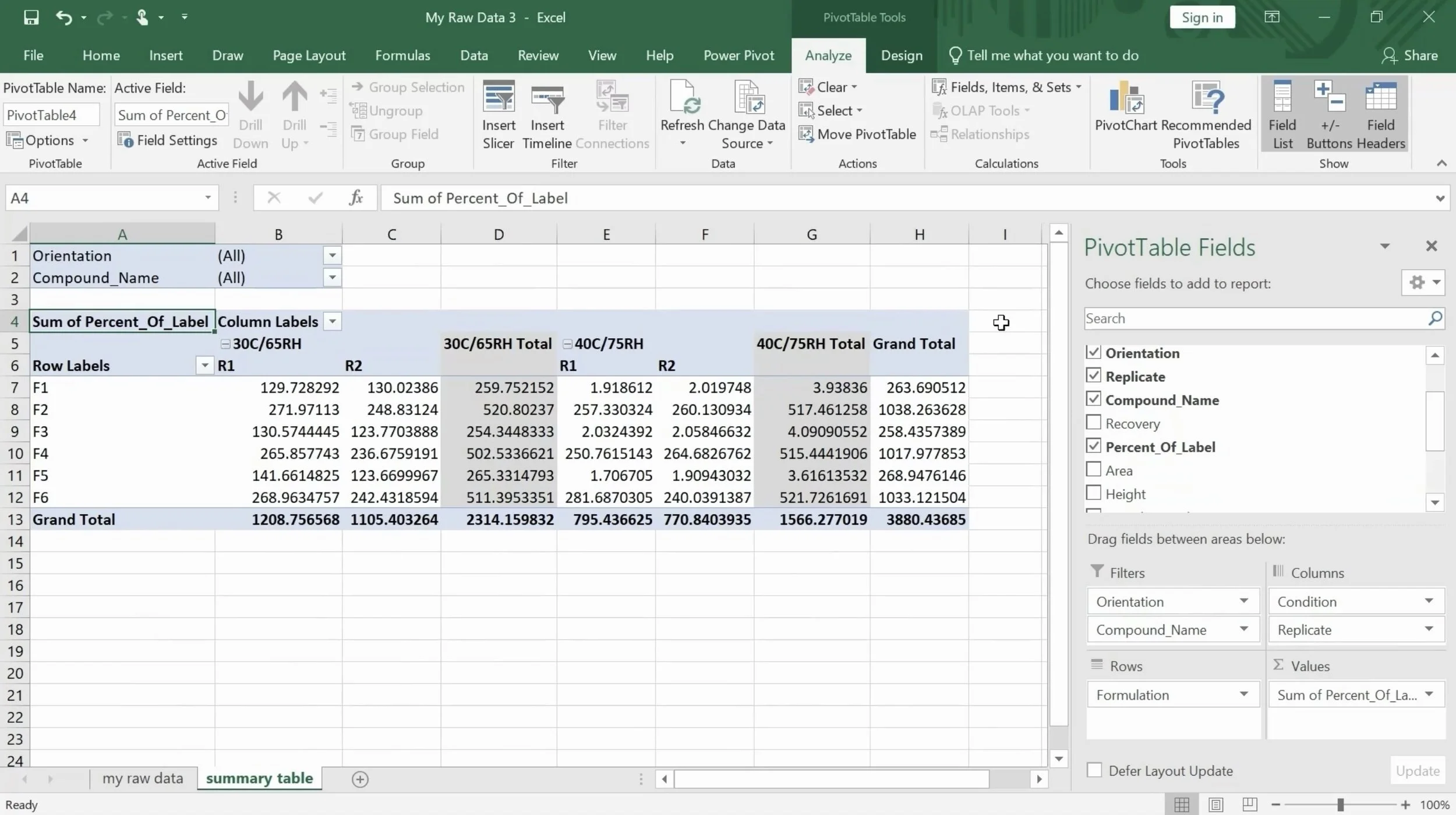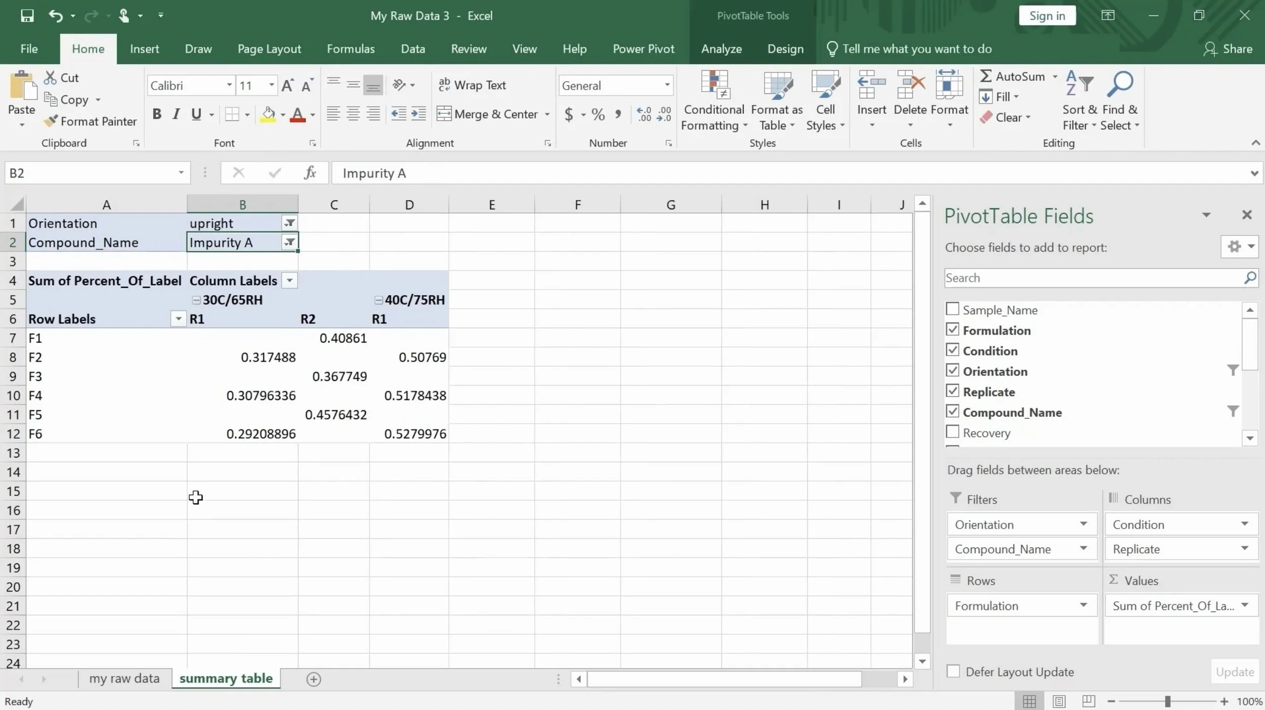 Step 4. Now we can change our orientation and compound name filters depending on what we want to display in our table. For orientation let’s choose upright and for compound let’s choose impurity A. And that’s it!
